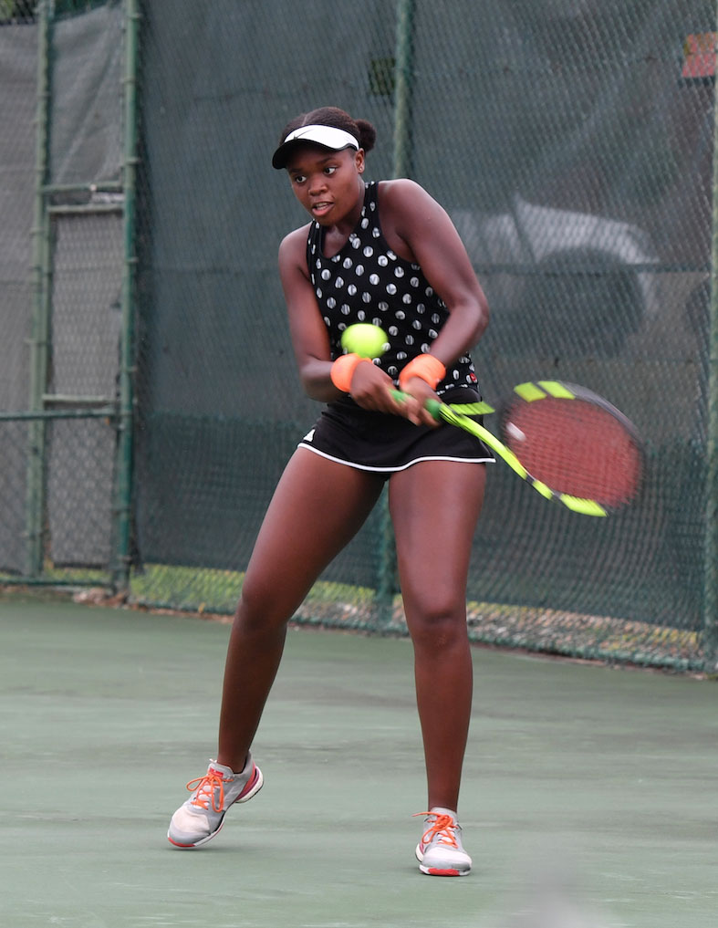 Barbados’ best female players Hannah Chambers and Gabrielle Leslie held centre court at the National Tennis Centre, Wildey for two hours and 27 gripping minutes while battling to win the ICBL Senior Tennis Open on Sunday.