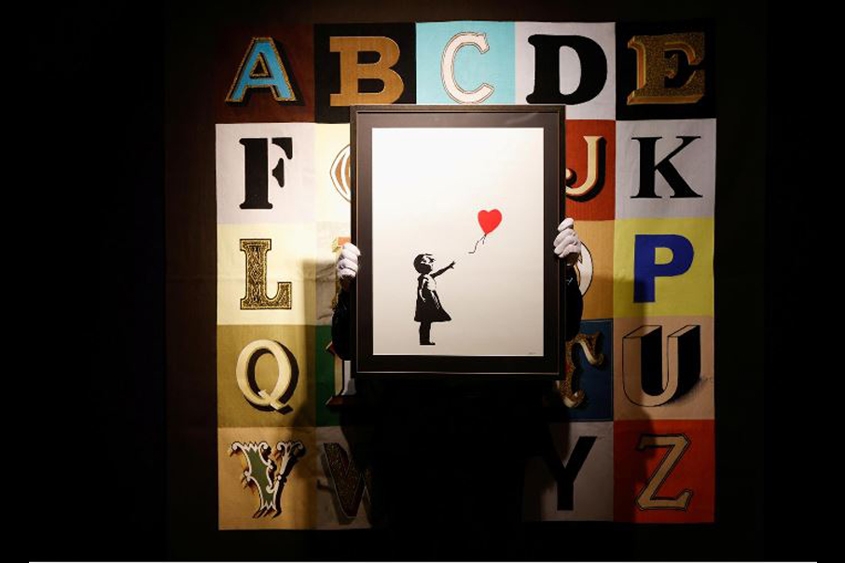 “Girl With Balloon”, an image of a young girl holding a heart-shaped red balloon that was originally painted as a mural on London’s Waterloo Bridge, is one of Banksy’s most recognisable works.