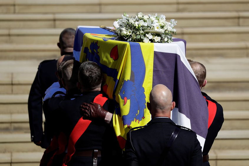 Queen Elizabeth and her family paid their last respects to Prince Philip at a funeral on Saturday that celebrated his naval past, his international heritage and seven decades of service in which he helped guide the queen through repeated crises.