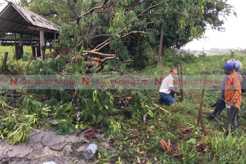 The road at Highland, St Thomas is impassable, blocked by fallen trees.