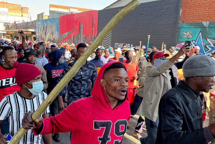 On Sunday, protesters armed with sticks, golf clubs and branches were seen marching through Johannesburg’s central business district.