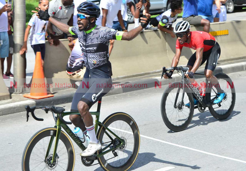 Gregory Vanderpool captured his third Stoli Cockspur National Cycling Championships road race yesterday on the Graeme Hall circuit in a blistering sprint to the finish, holding off Jamol Eastmond.
