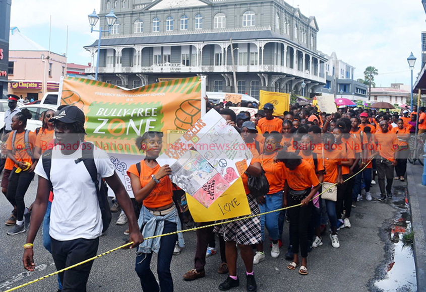 Hundreds of students took over the streets of Bridgetown on Monday morning and spoke out against bullying.