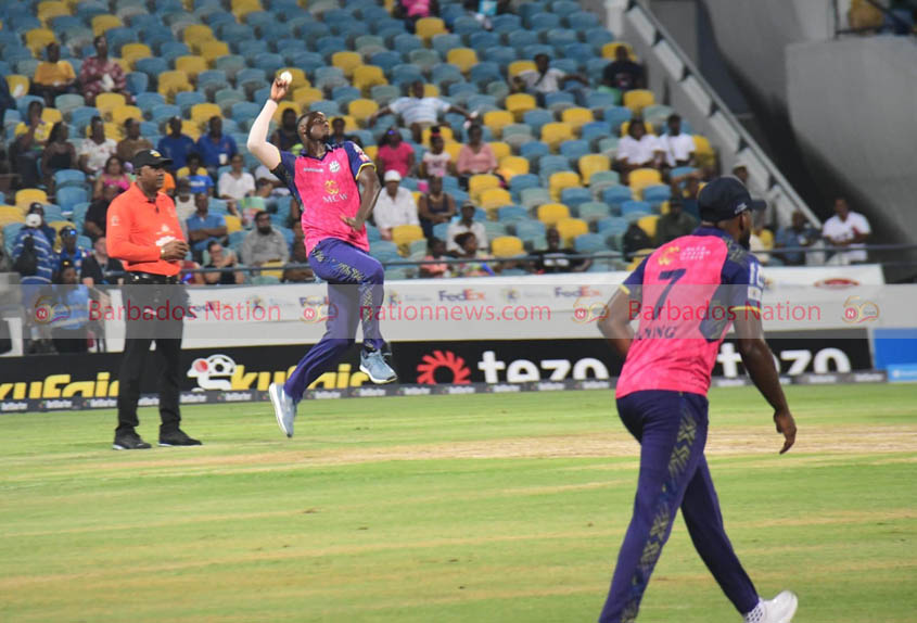 In reply, the Royals started disastrously as Russell struck twice in his first over with heavy-set Rahkeem Cornwall edging a pull to Dwayne Bravo at slip and Kyle Mayers, trapped LBW, both opening batsmen falling for “golden ducks”.