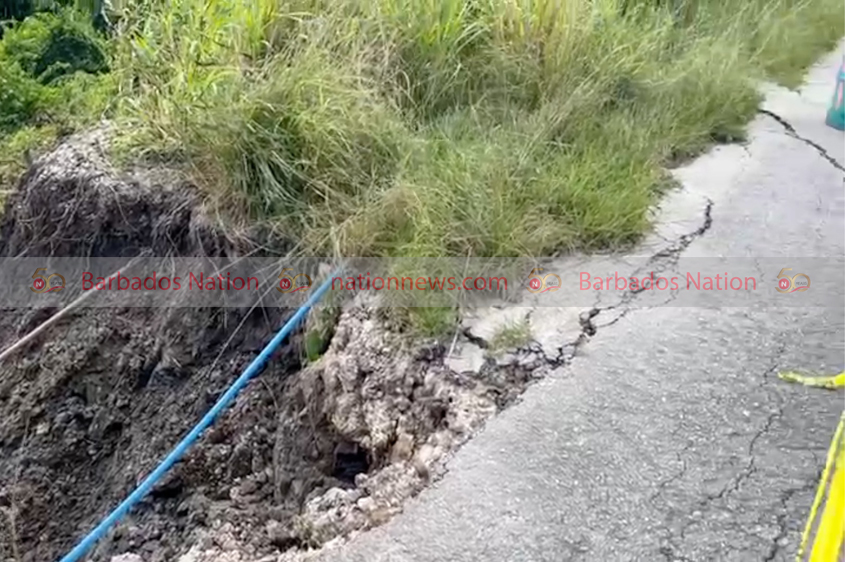 The road in Mellows Hill, St Joseph is cracking and a section of it has been reduced to single lane due to the land slippage.