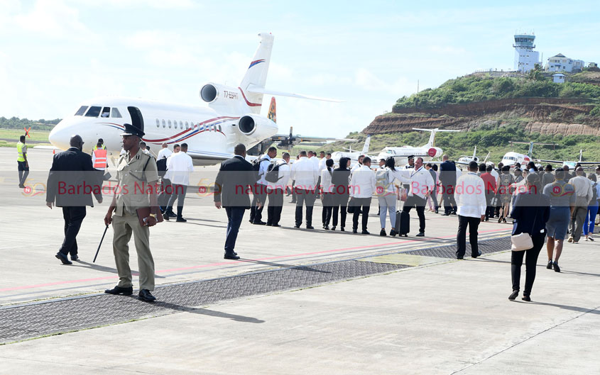 Just after 9 a.m. Prime Minister of Barbados, Mia Amor Mottley and Minister of Foreign Affairs, Kerrie Symmonds touched down in a Regional Security System (RSS) military plane.