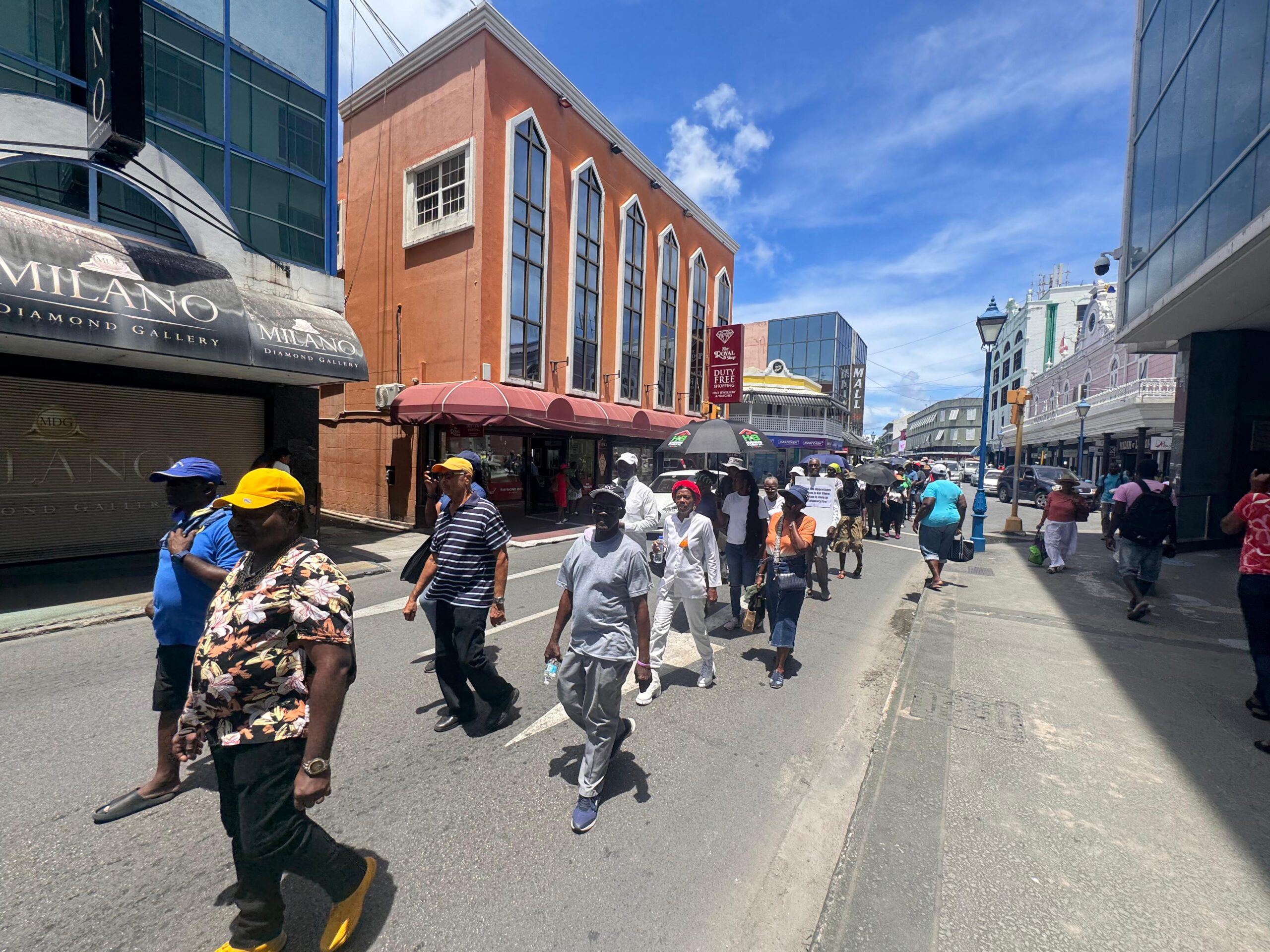 Around 100 disgruntled people again made the march from Kensington Oval to Independence Square.