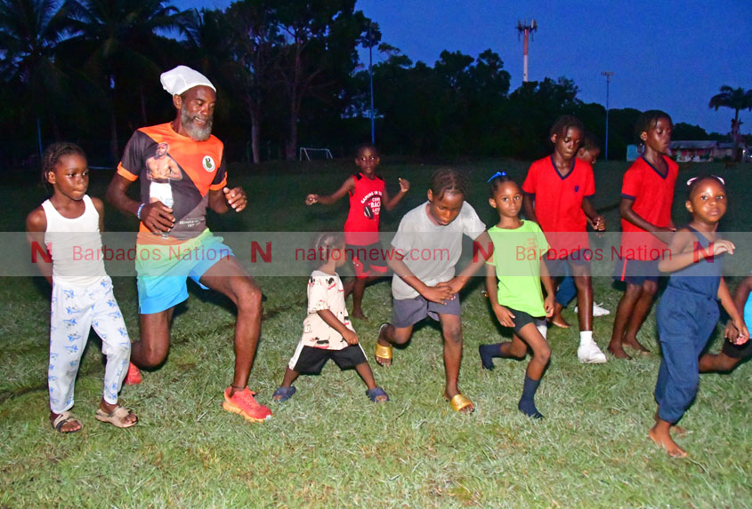 David “Dottie” Oxley (second from left) taking the children in the community through their paces. (Picture by Reco Moore)