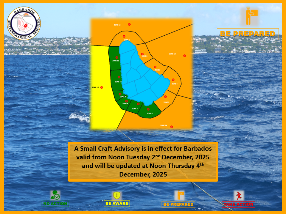 Barbados Meteorological Services has issued a Small Craft Advisory, with rough and choppy seas expected to begin on Wednesday night.