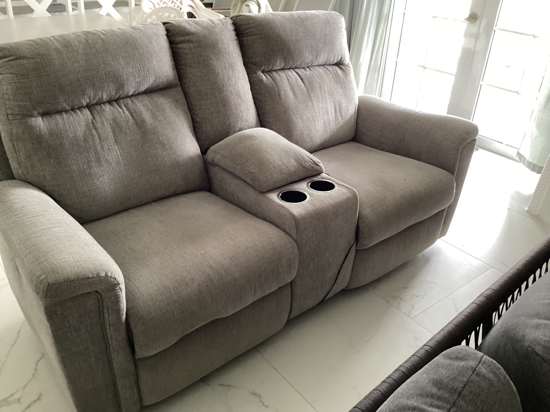 air mattress, Two seater electric recliner, 2 Accent chairs, blender & rug.