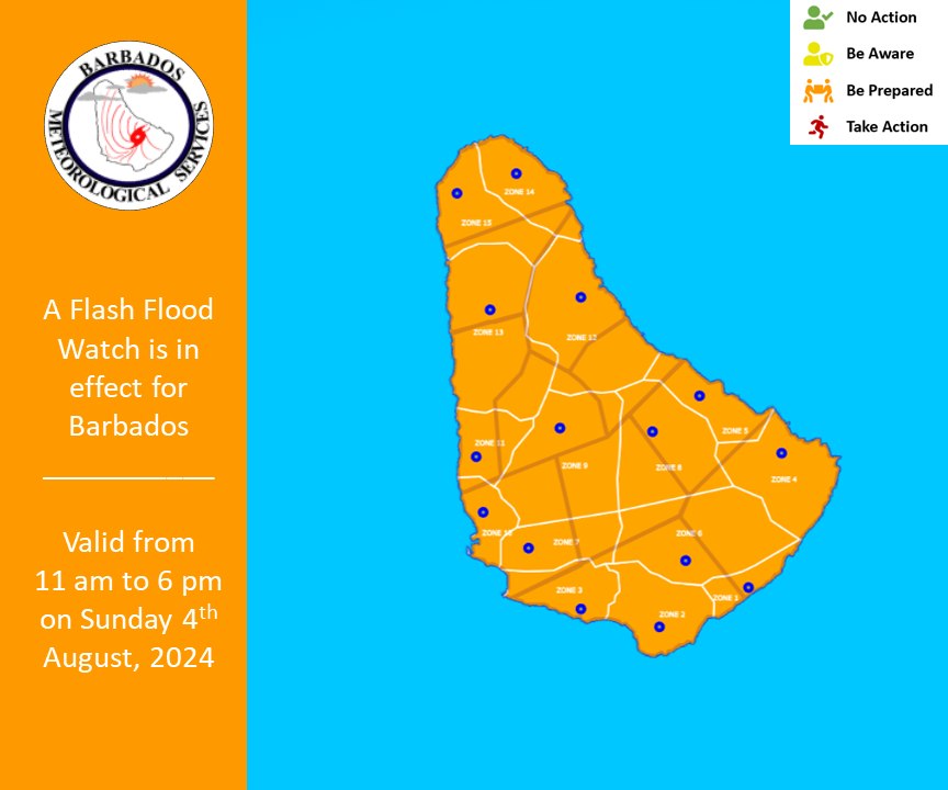 The Barbados Meteorological Services (BMS) has issued a Flash Flood Watch for the island.