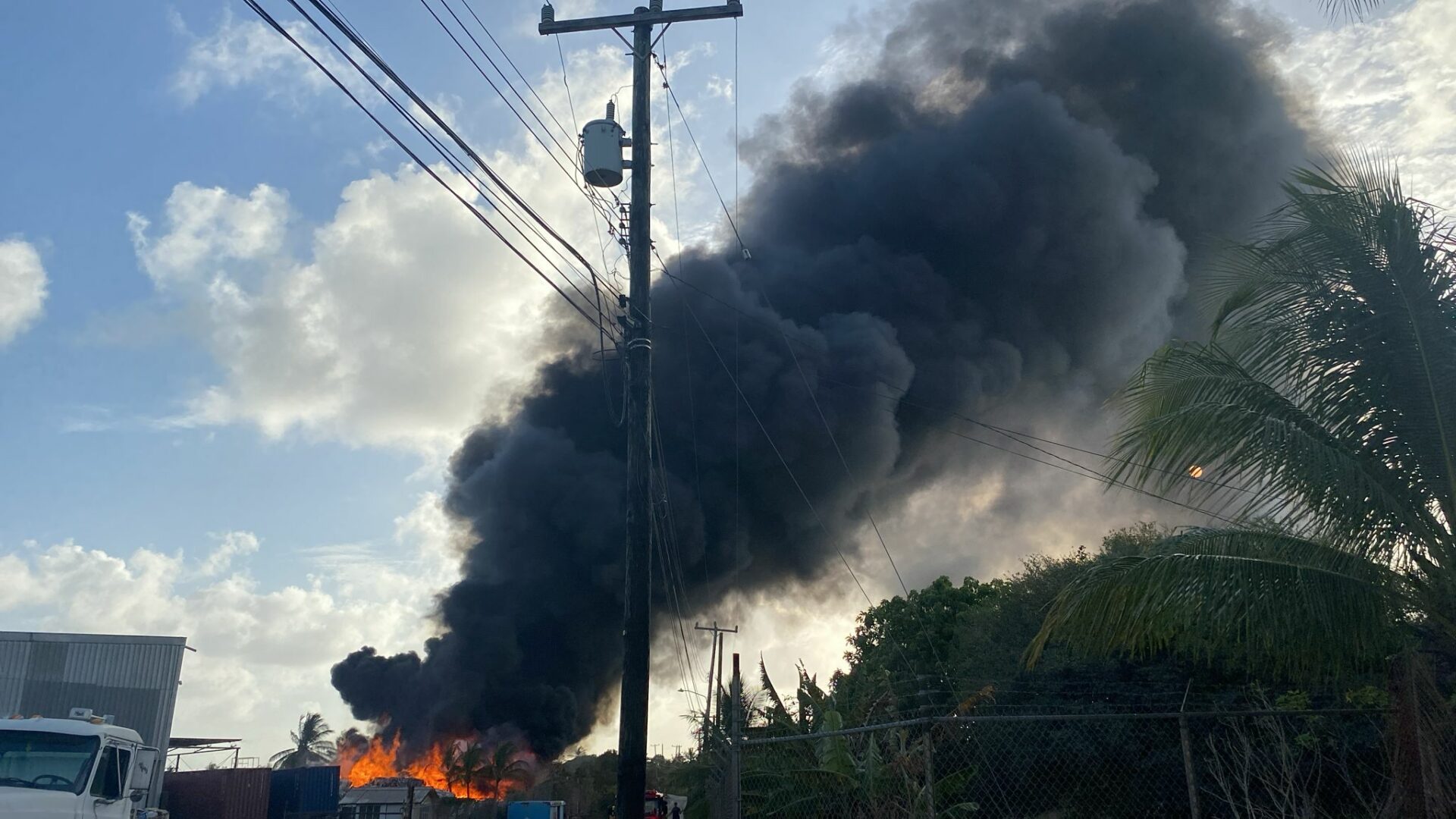 A blaze has erupted at B's Recycling in Cane Garden, St. Thomas.