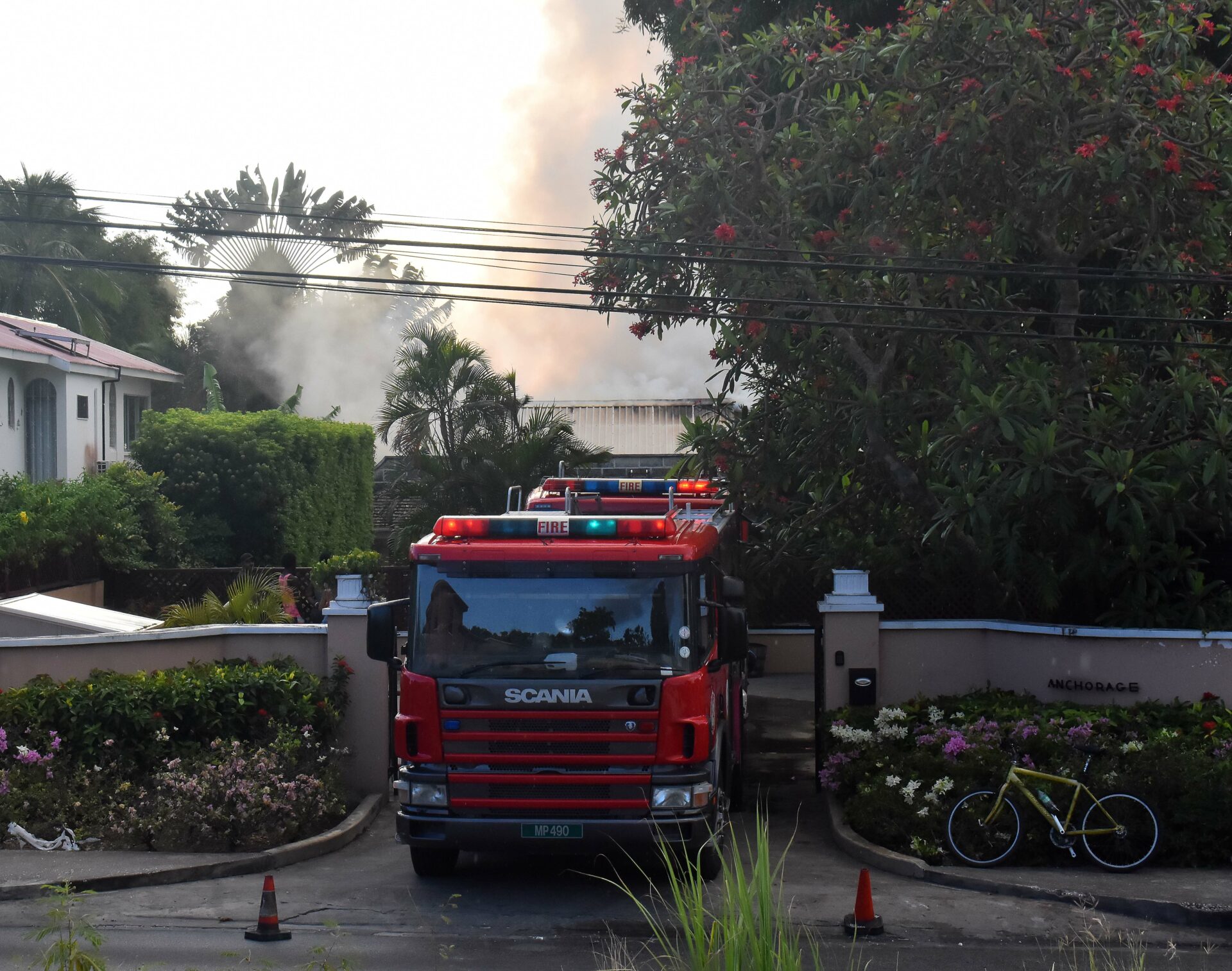 FIRE CREWS RUSHED to Durants, St James, Wednesday evening, where fire broke out at the private beach front villa Anchorage.