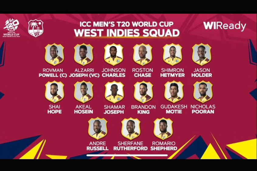 Fast bowling sensation Shamar Joseph headlines the West Indies 15 man squad for this summer’s T20 World Cup.