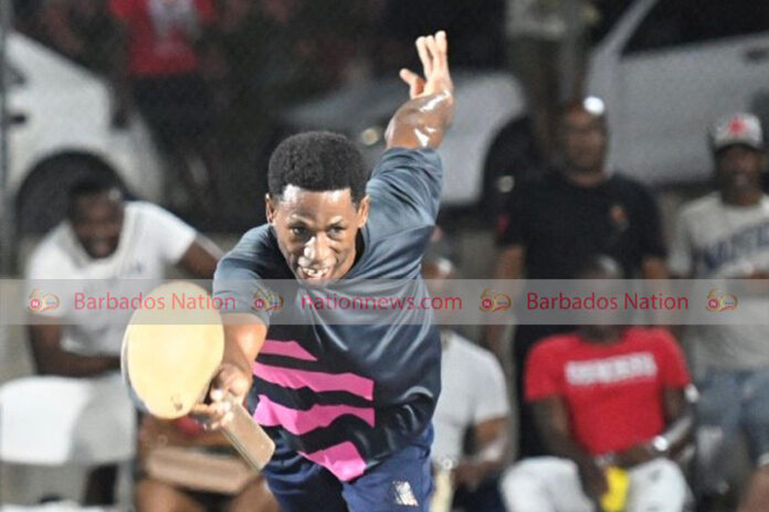 The obdurate Adrian Scott let his racquet do the talking as he easily defeated the loquacious Kirt “Bruce Lee” Alleyne to capture the We Gathering Orange Hill single-game elimination tournament on Saturday night at Orange Hill, St James.